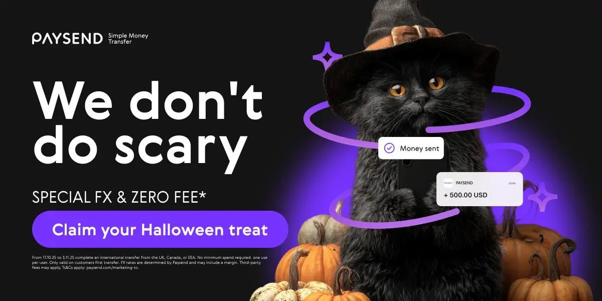 This Halloween, Paysend isn’t here to trick you – only treats for our customers. Throughout the spooky season and beyond, enjoy special FX rates and one zero fee transfer*. No promo code needed; your treat will be applied automatically at checkout.