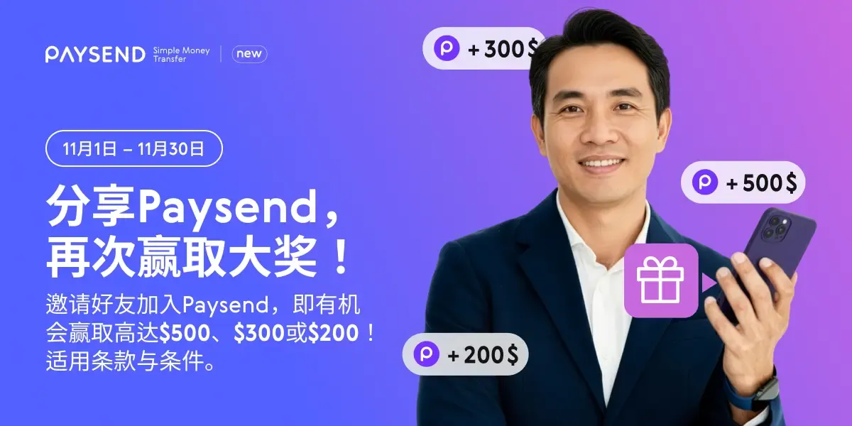 Paysend抽奖活动将在十一月继续进行,抓住机会赢取高达 $500、$300 或 $200 美元(或等值金额) 的Paysend奖励金。